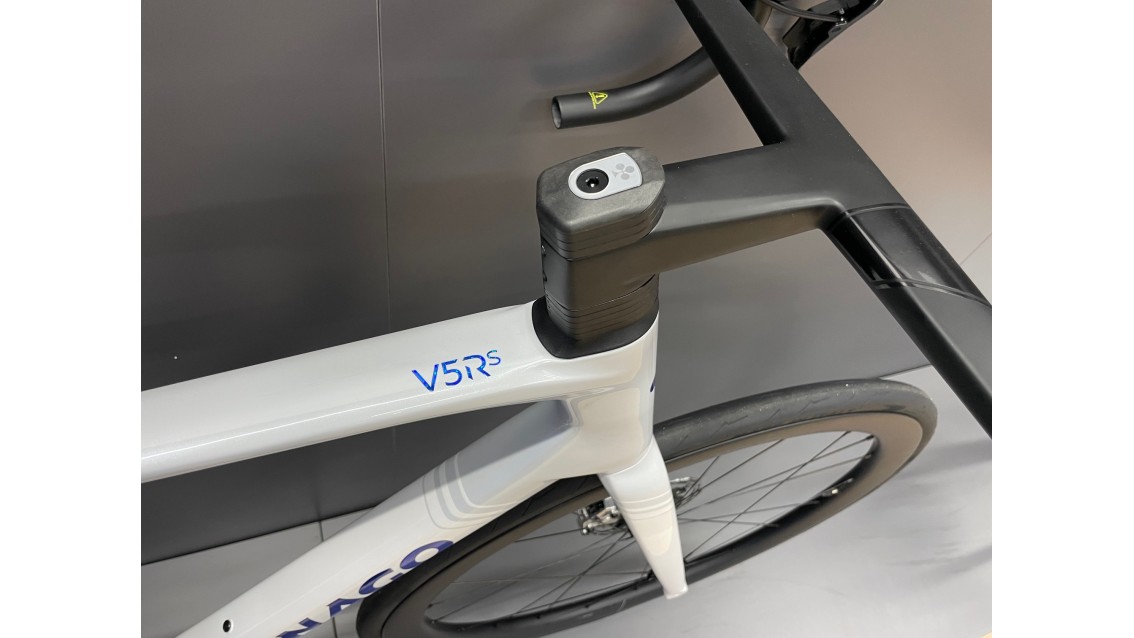 La sezione frontale della V5R misura 250 cm², il 13% in meno rispetto al modello precedente. L'evoluzione del tubo sterzo, ora più stretto, contribuisce a ridurre la resistenza dell'aria e a risparmiare watt.