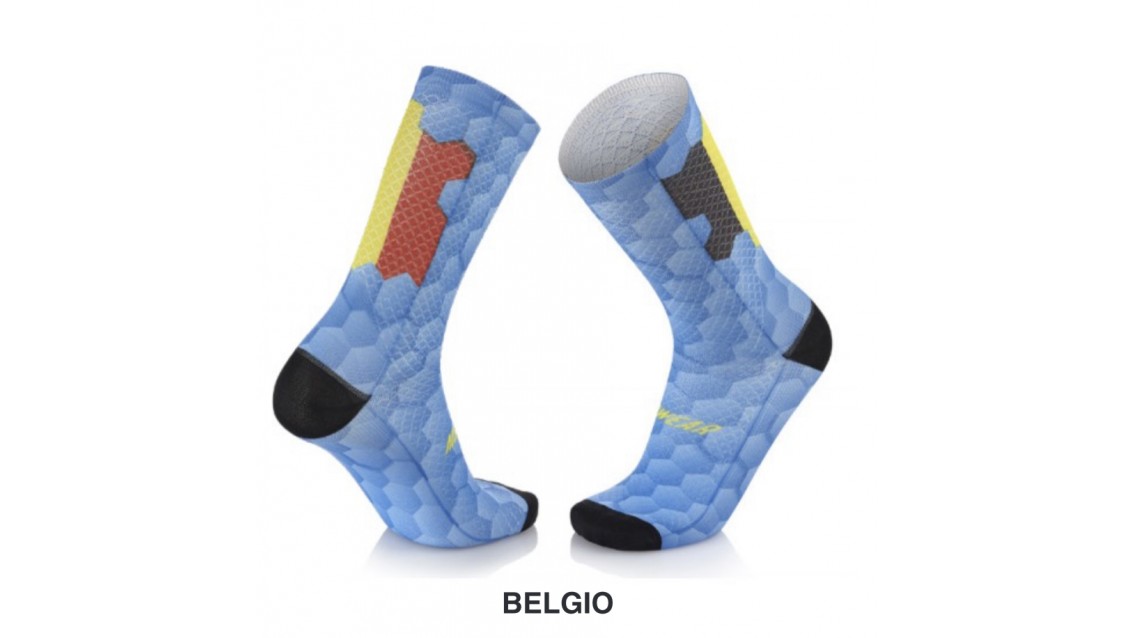 Calzini MBWEAR FUN NATIONS è un prodotto che può essere utilizzato durante tutto il periodo dell’anno. È il giusto compromesso tra struttura – leggerezza – comfort e soprattutto design. Ha una struttura ideale per tutti i ciclisti che desiderano ottime prestazioni, durata e design unici. Dotato di rete con canali traspiranti in tutta la struttura della calza. Grazie alla trama utilizzata ed al grado di tensione delle fibre, aiuta anche la circolazione, così da garantire ottima sensibilità e un piede aerato ed asciutto.