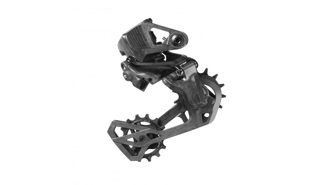 Le due pulegge del deragliatore sono state ingrandite a 14 denti con un profilo differenziato. Il diametro maggiore riduce l'attrito tra le maglie della catena nel passaggio attraverso la gabbia del deragliatore e l'attrito sui cuscinetti in ceramica della puleggia superiore. L'obiettivo è eliminare il più possibile l'attrito e migliorare la precisione del movimento della catena. La puleggia inferiore, responsabile della tensione della catena, è progettata per funzionare in modo efficiente per molti chilometri.