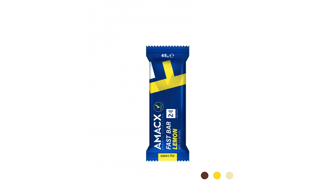 Amacx Fast Bar è una fonte di diversi tipi di carboidrati che forniscono il giusto supporto (rapporto carboidrati 2:1). La sostanza morbida rende questa barretta facile da mangiare, ideale durante l'attività fisica. La barretta è composta per il 40% da mandorle ed è naturalmente ricca di magnesio, potassio e calcio. Disponibile nei gusti Limone, Chocolate e Vaniglia.