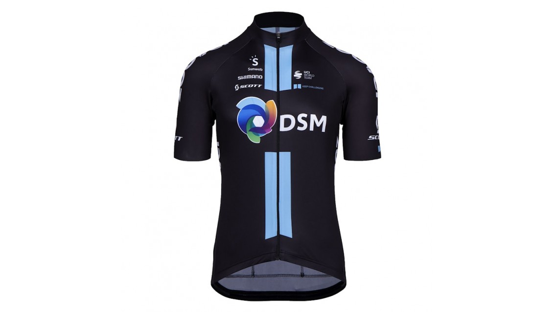 Pedala con la stessa maglia da ciclismo dei membri del team pro DSM. Si adatta perfettamente alla forma del corpo, quindi offre eccellenti proprietà aerodinamiche. Grazie all'elasticità flessibile è anche estremamente confortevole. L'orlo in silicone mantiene la maglia sempre addosso...