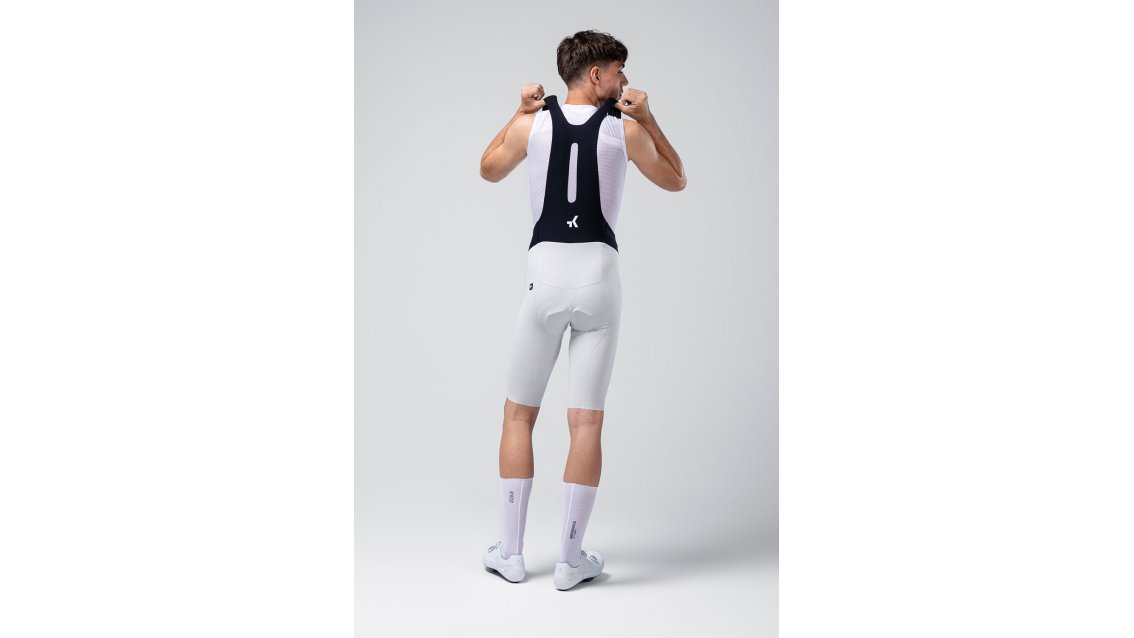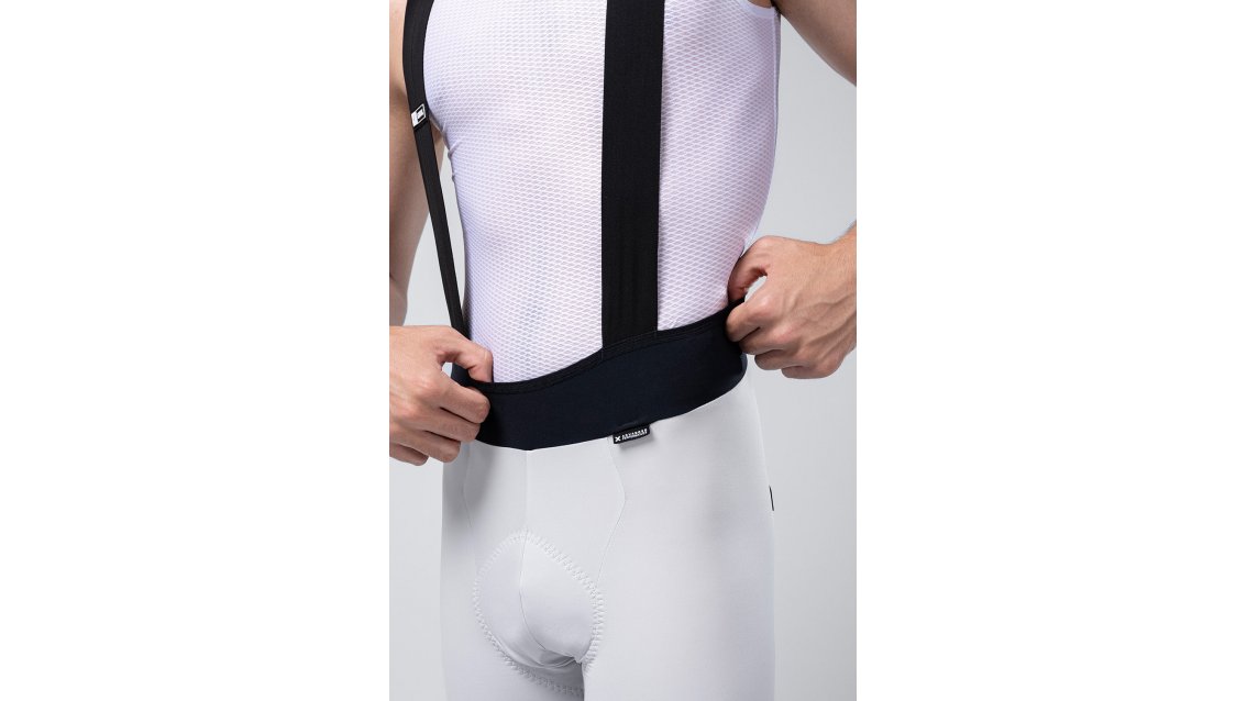 Le bretelle ergonomiche, realizzate a taglio vivo e con nastri di larghezza maggiorata, incorporano filo di grafene che migliora la regolazione termica, neutralizza gli odori ed evita l'accumulo di umidità. Le gambe, rifinite senza cuciture, offrono una vestibilità precisa e leggera, eliminando i punti di pressione e donando una sensazione di seconda pelle anche nei percorsi più impegnativi.