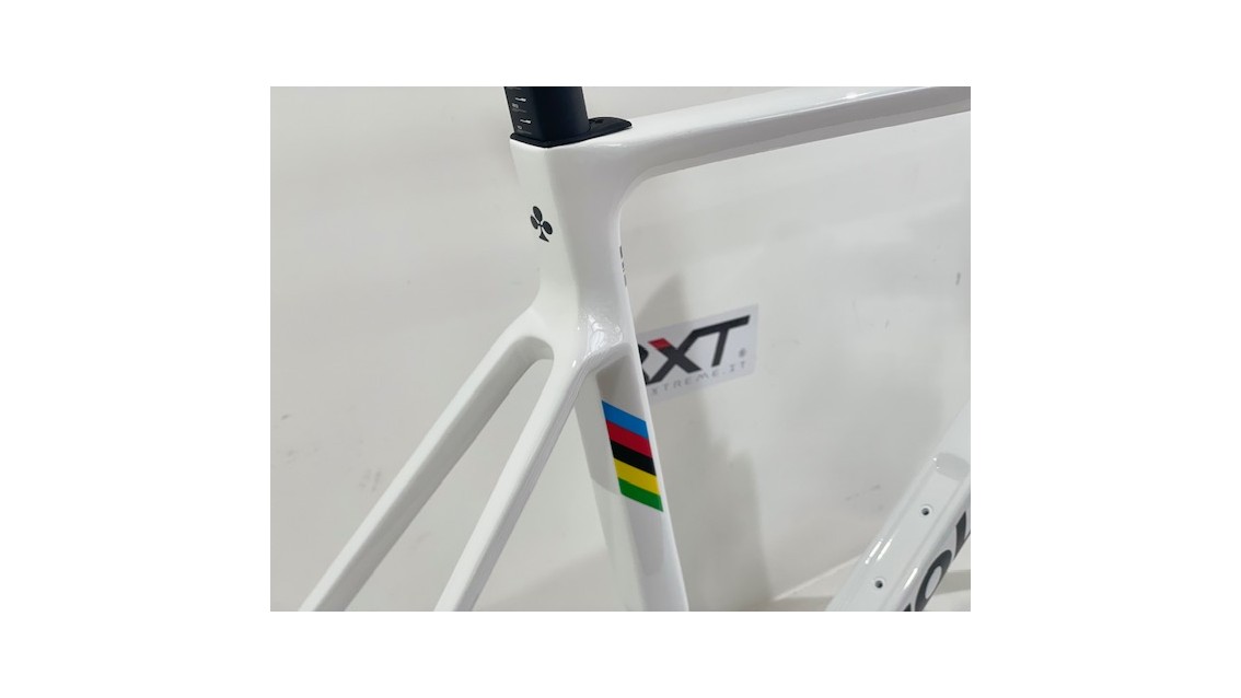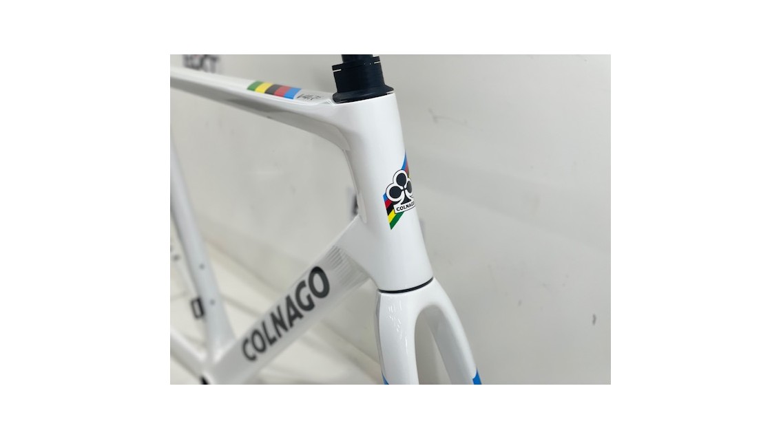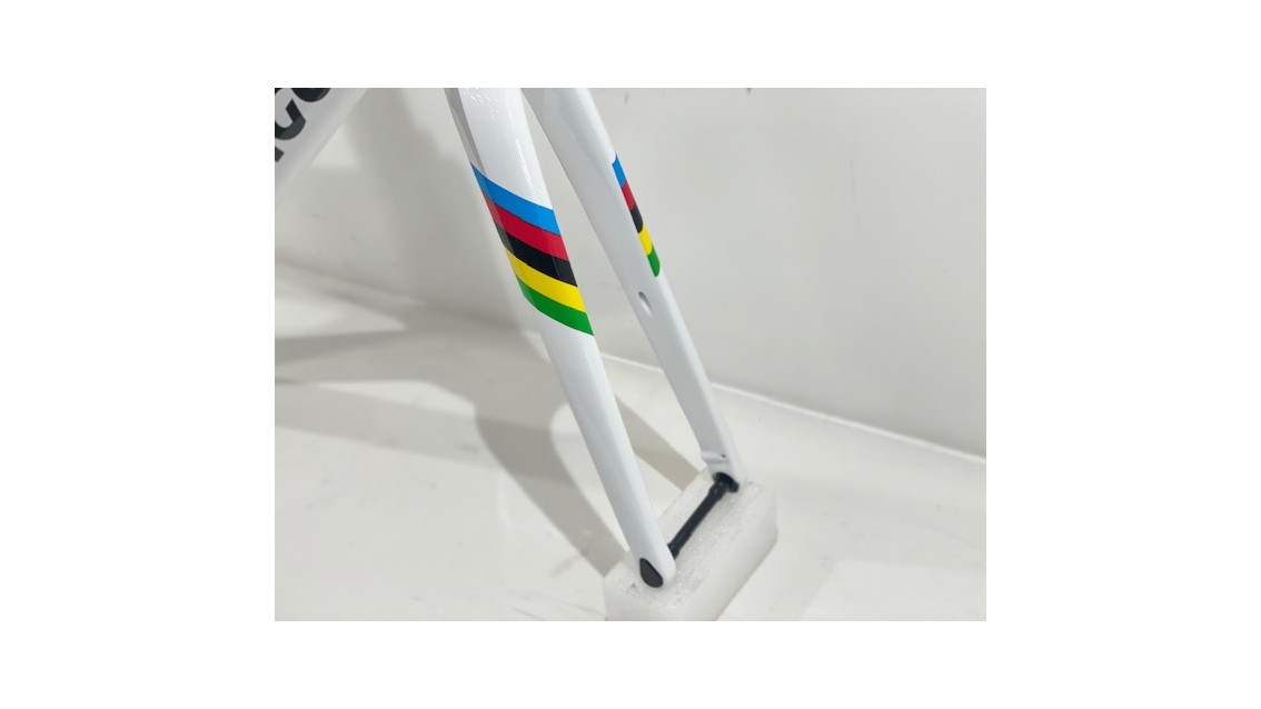 Un telaio che celebra la vittoria e l'eccellenza: il Colnago V4Rs Iride World Champion, ispirato al trionfo di Pogacar, combina prestazioni senza pari con l'eleganza dei colori iridati del campione del mondo.
